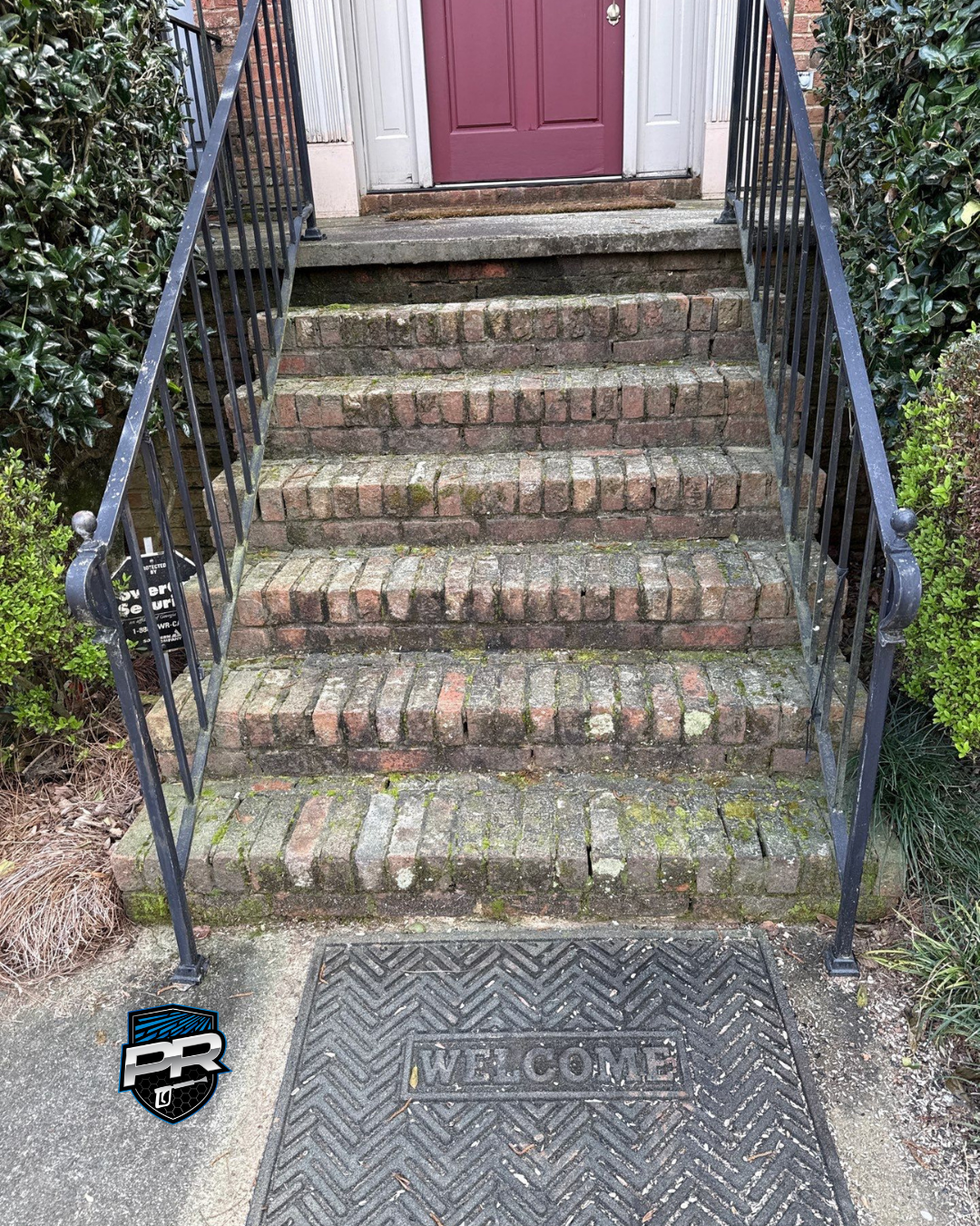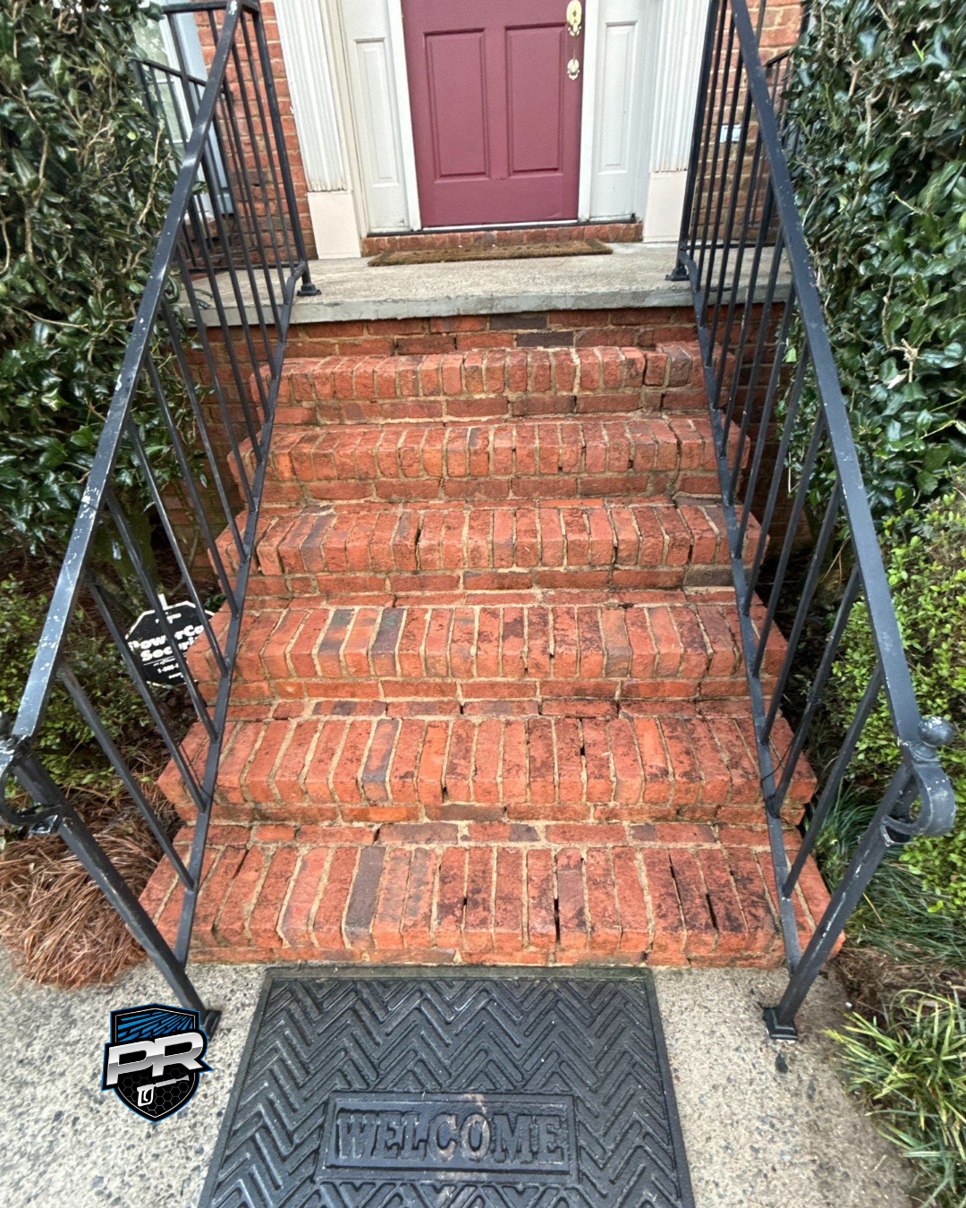For this job we focused on the brick steps, the walkway, and the surrounding areas. Our team used a professional pressure washing process that is appropriate for delicate exterior surfaces. That approach allowed us to remove stubborn layers of grime and discoloration while protecting the brick and mortar from damage.